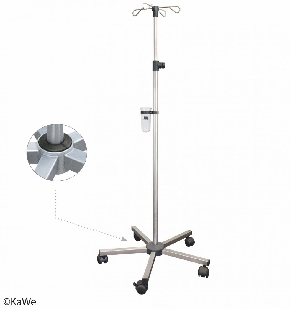 The stability of the infusion stand is guaranteed when infusion syringes and pumps with a maximum weight of 5 kg are hung on the solid lower stand post such that their center of gravity is no more than 15 cm from the vertical axis of the post. Always ensure that the load is uniformly distributed in order to prevent tipping.