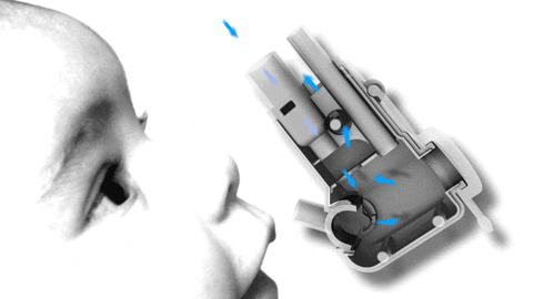 Medijet actively generates CPAP pressure using a modified Benveniste valve (Benveniste 1976), that is, directly in the generator, and thus the continuous positive pressure in the patient’s airway without an additional valve in the NIV device. As a result, Medijet is connected to the device with only a single-tube system. This facilitates handling and patient positioning.