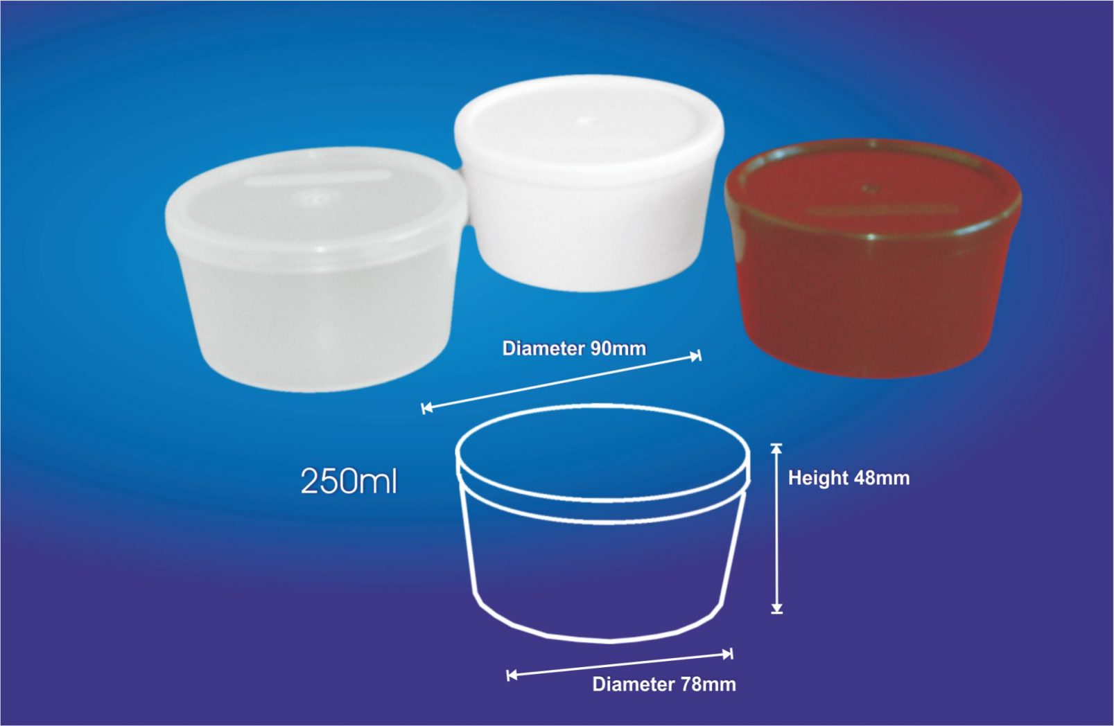 Size 250ml, Top Dia 51mm, Bottom Dia 78mm, Height 48mm